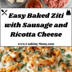 Classic baked ziti loaded with savory Italian sausage, creamy ricotta, and gooey mozzarella cheese, baked to bubbly perfection — the ultimate comforting pasta bake that’s perfect for family dinners or entertaining guests.
